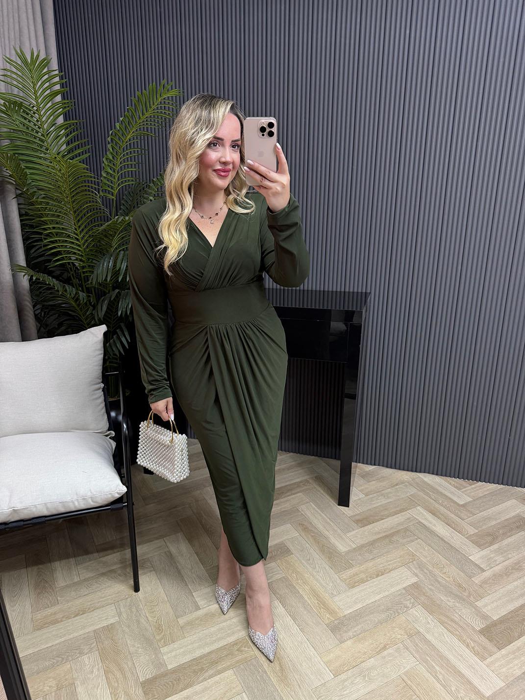 Helena Kruvaze Görünümlü Sandy Elbise Haki