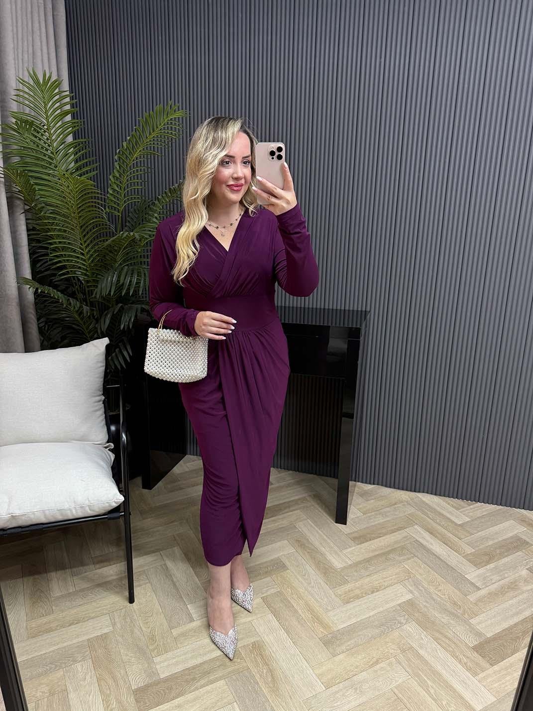 Helena Kruvaze Görünümlü Sandy Elbise Mor