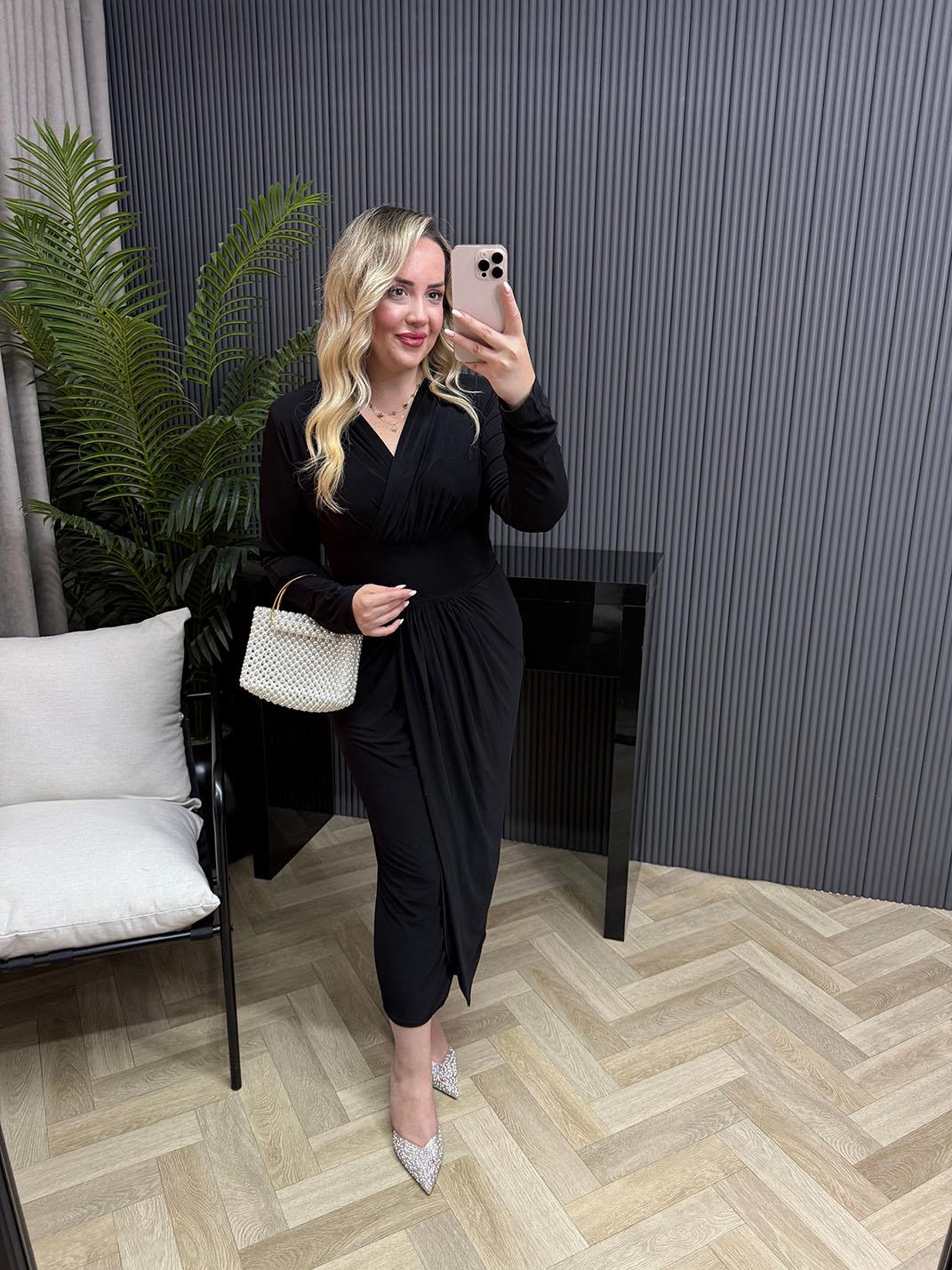 Helena Kruvaze Görünümlü Sandy Elbise Siyah