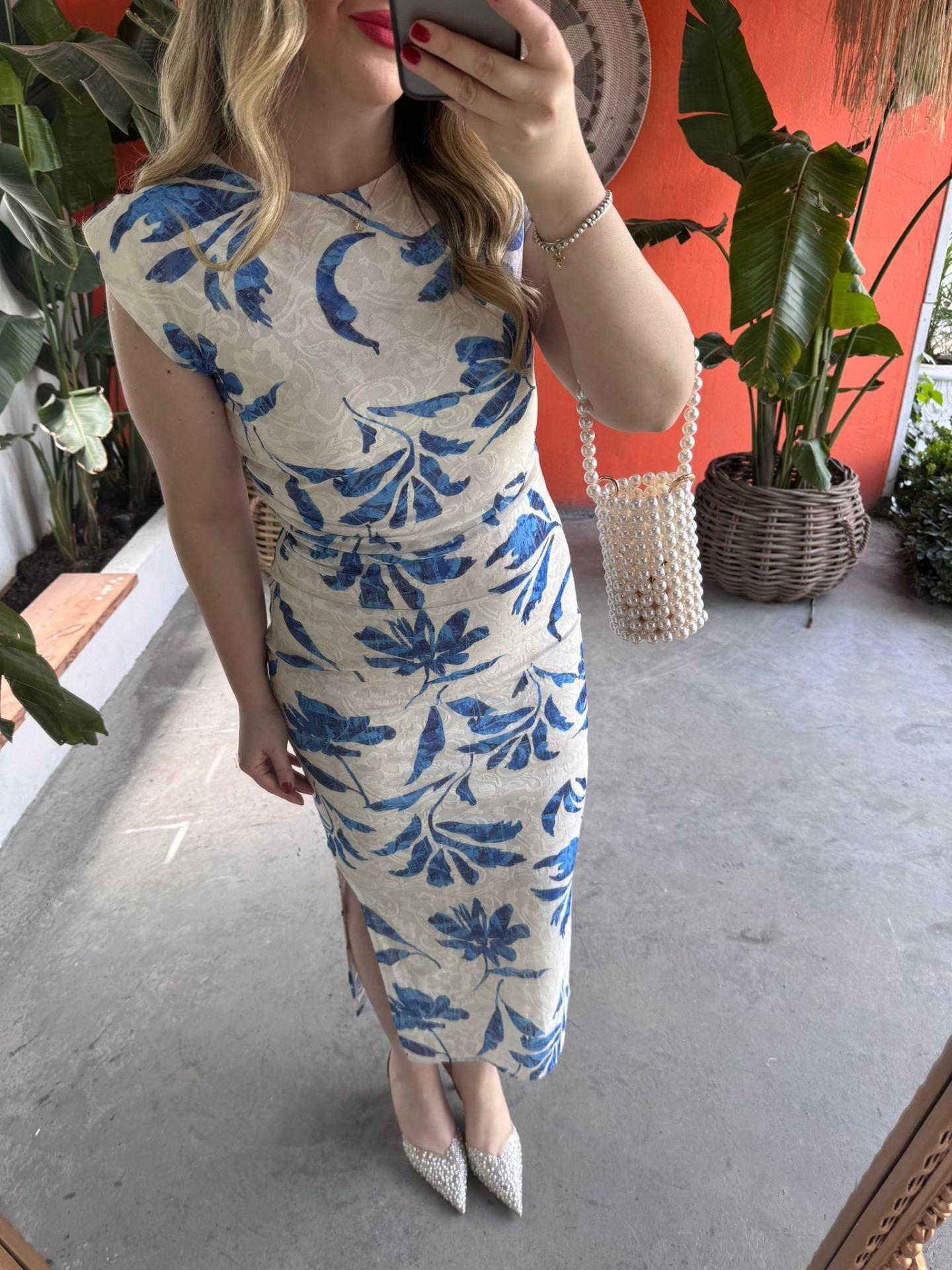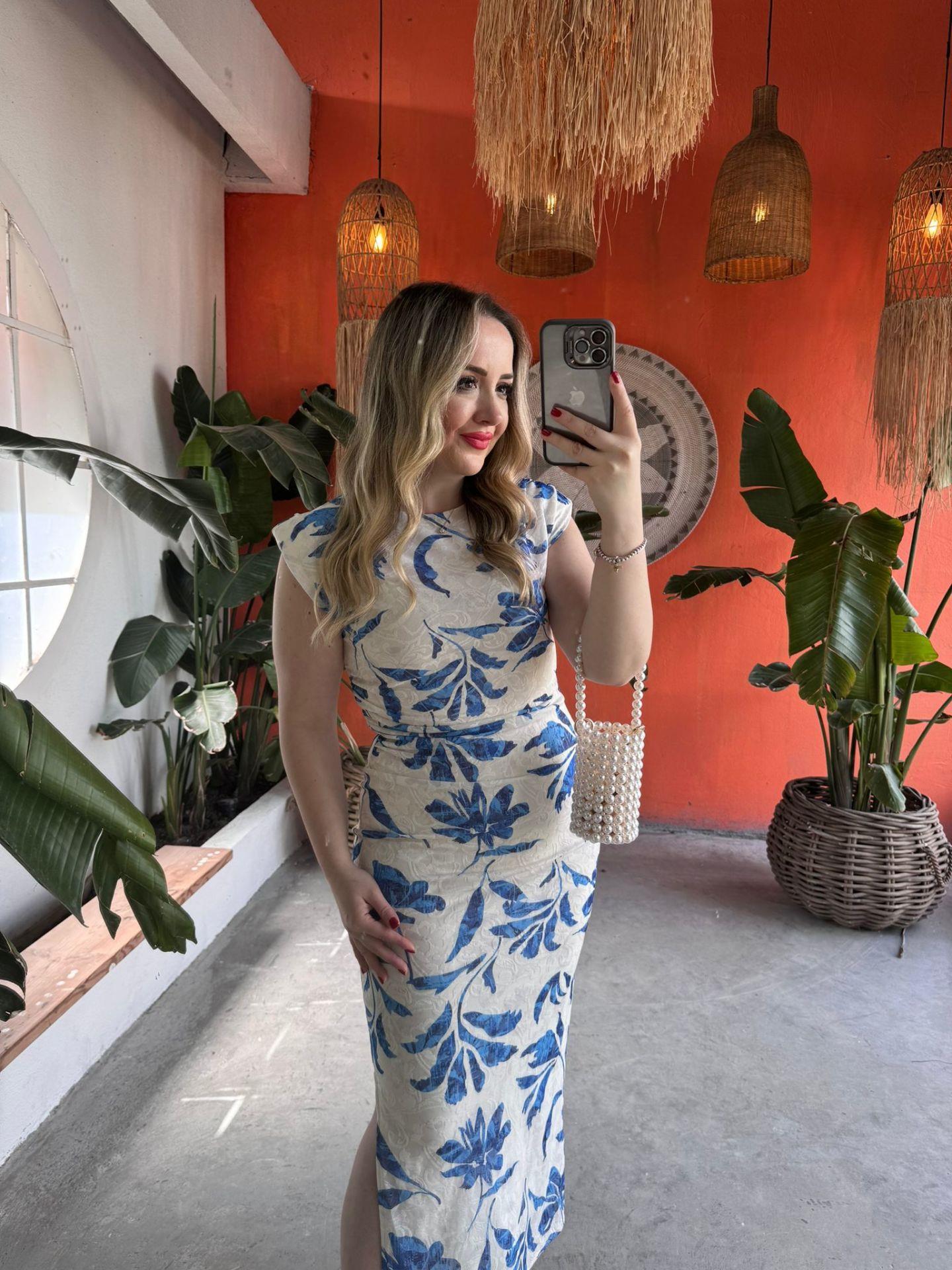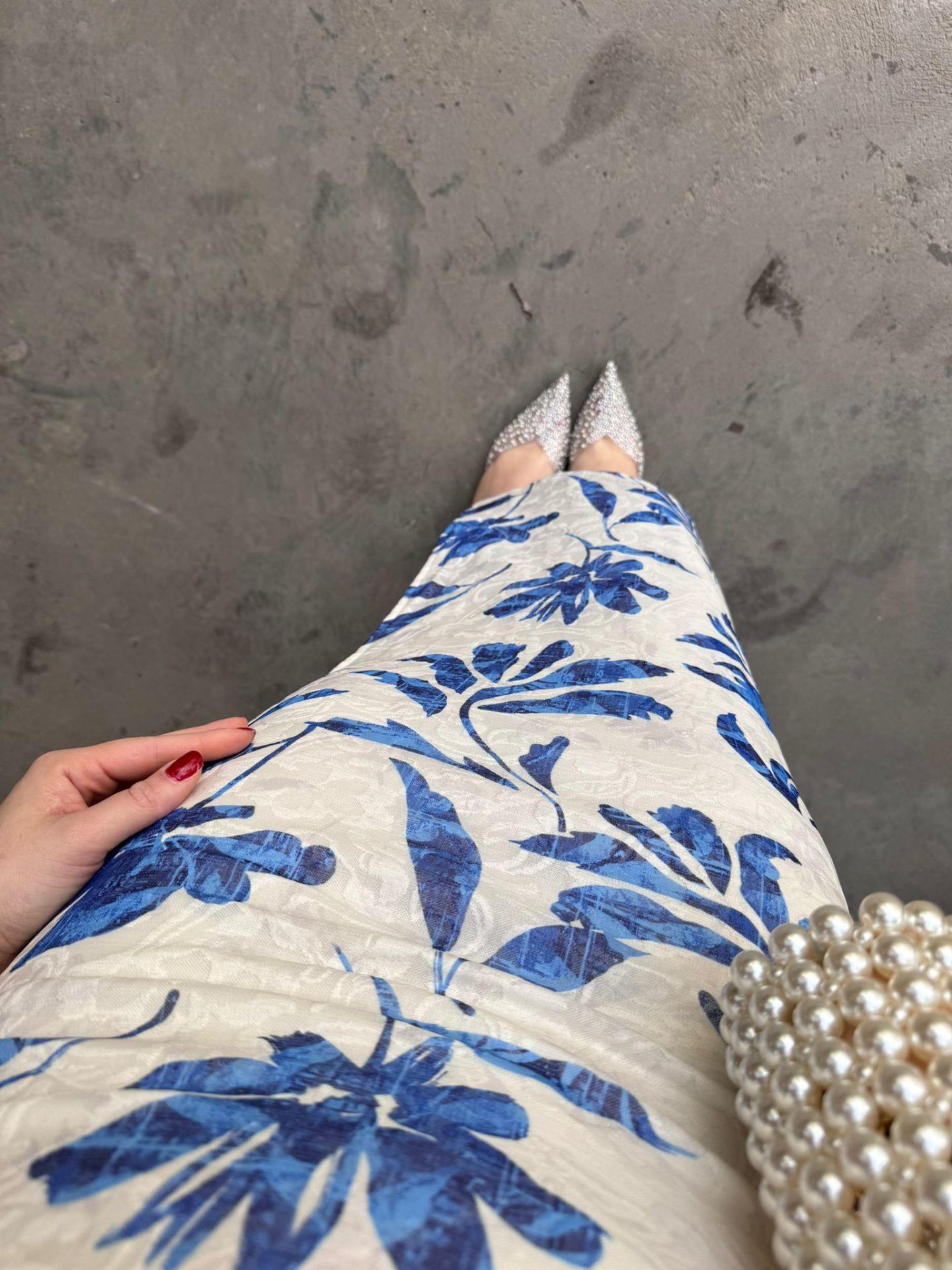 LADY VATKALI DRAPELİ ELBİSE MAVİ