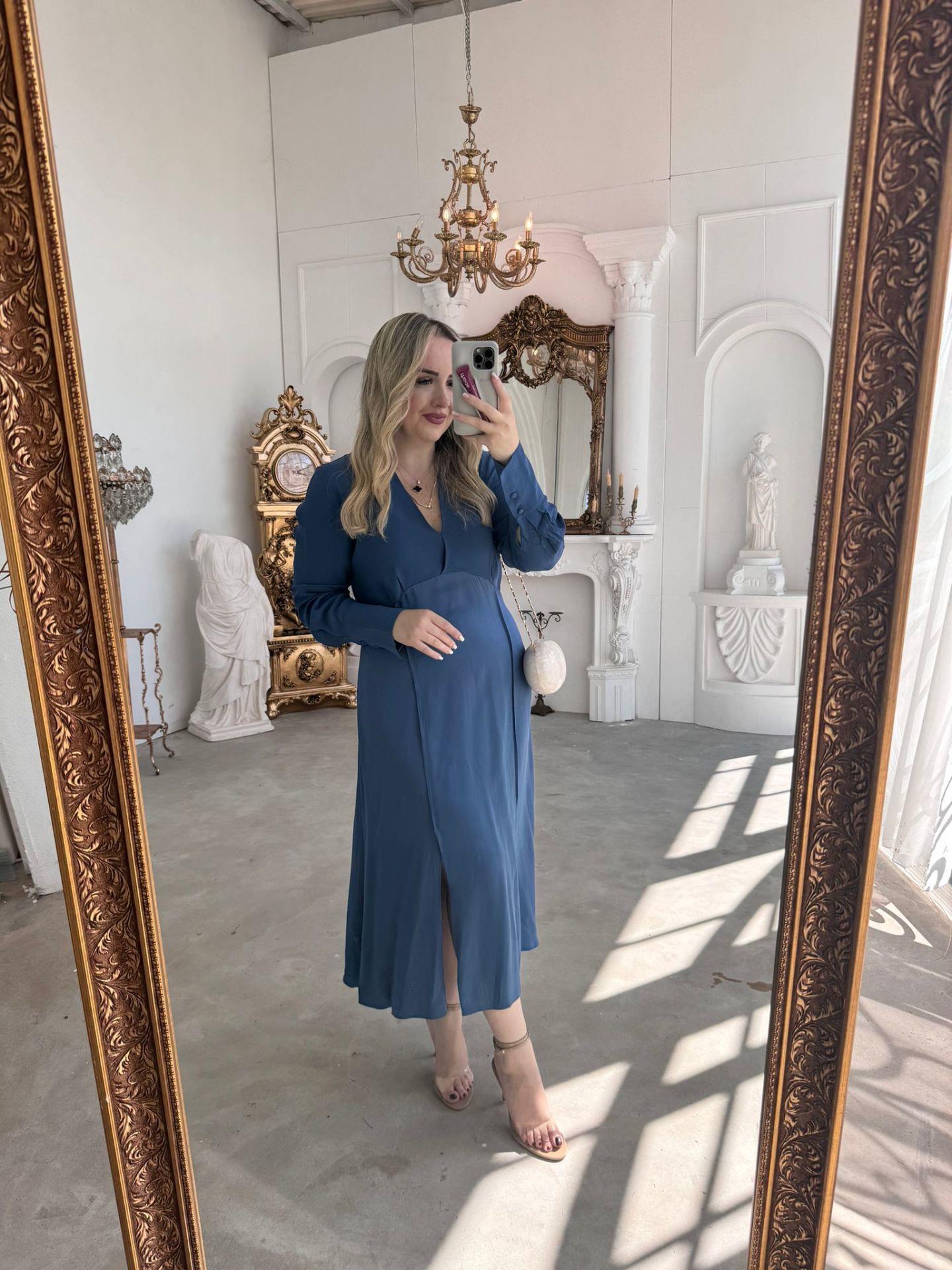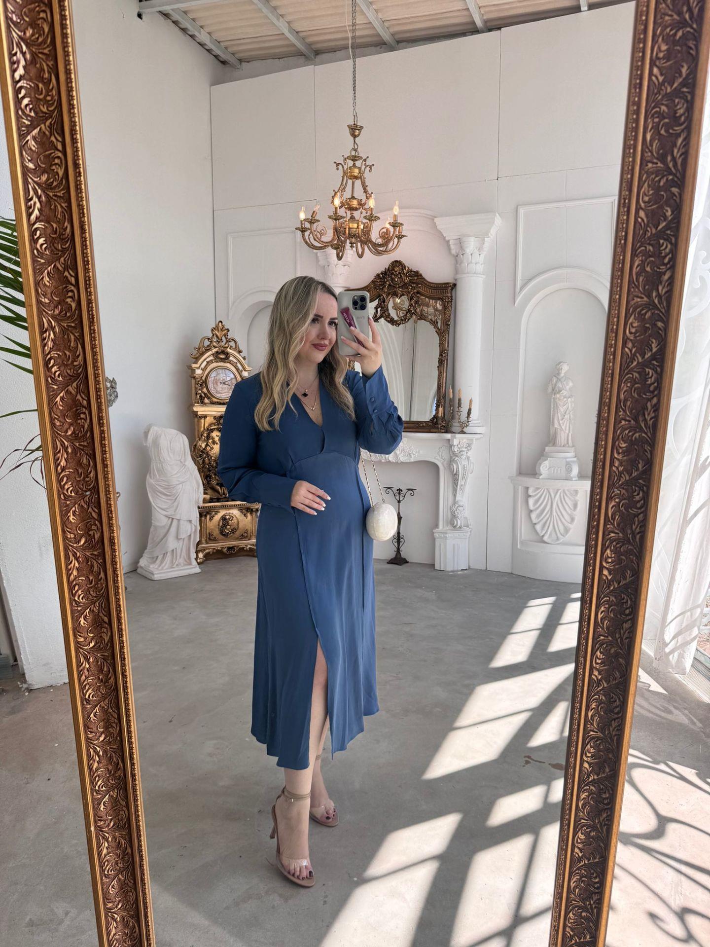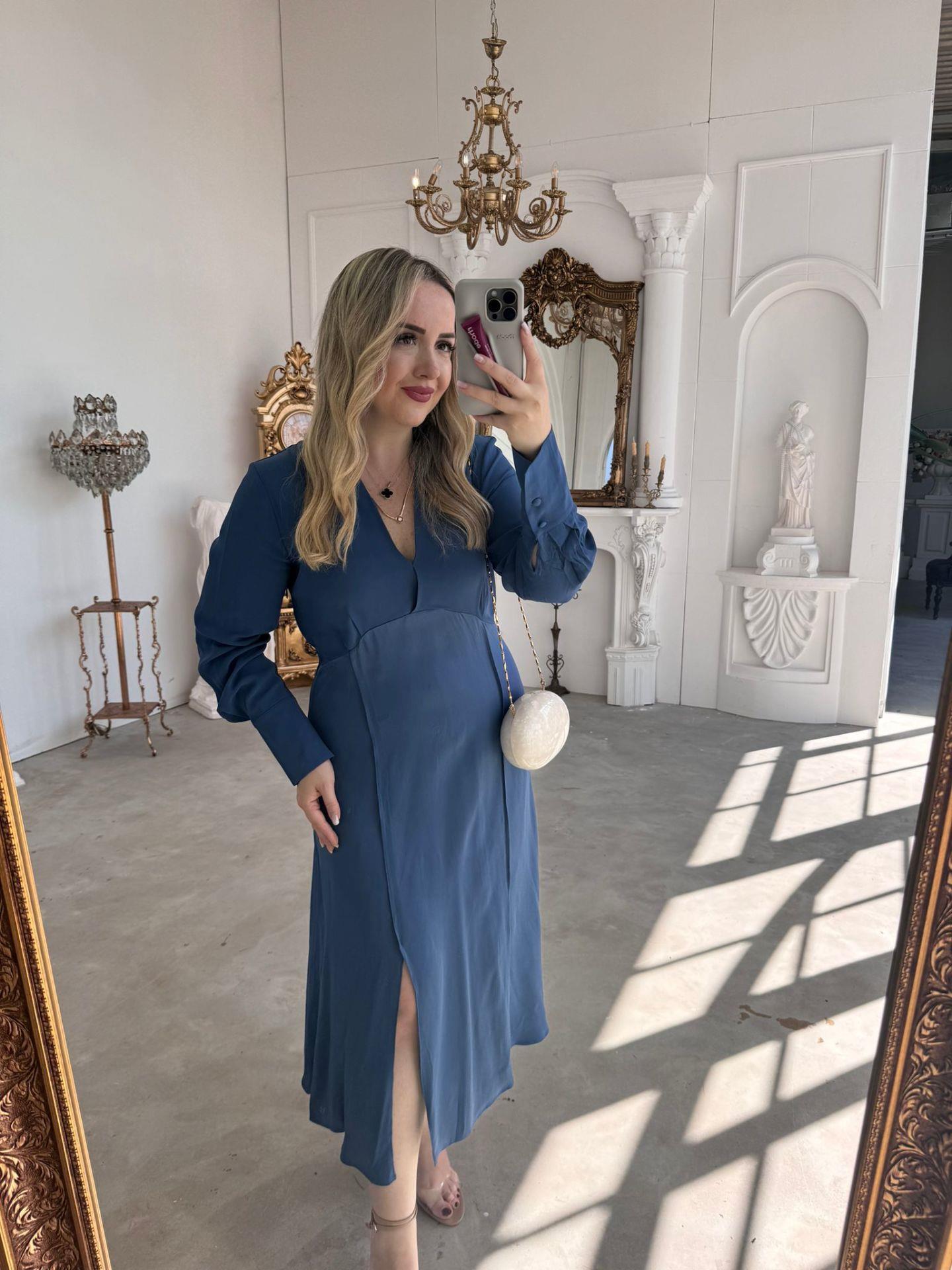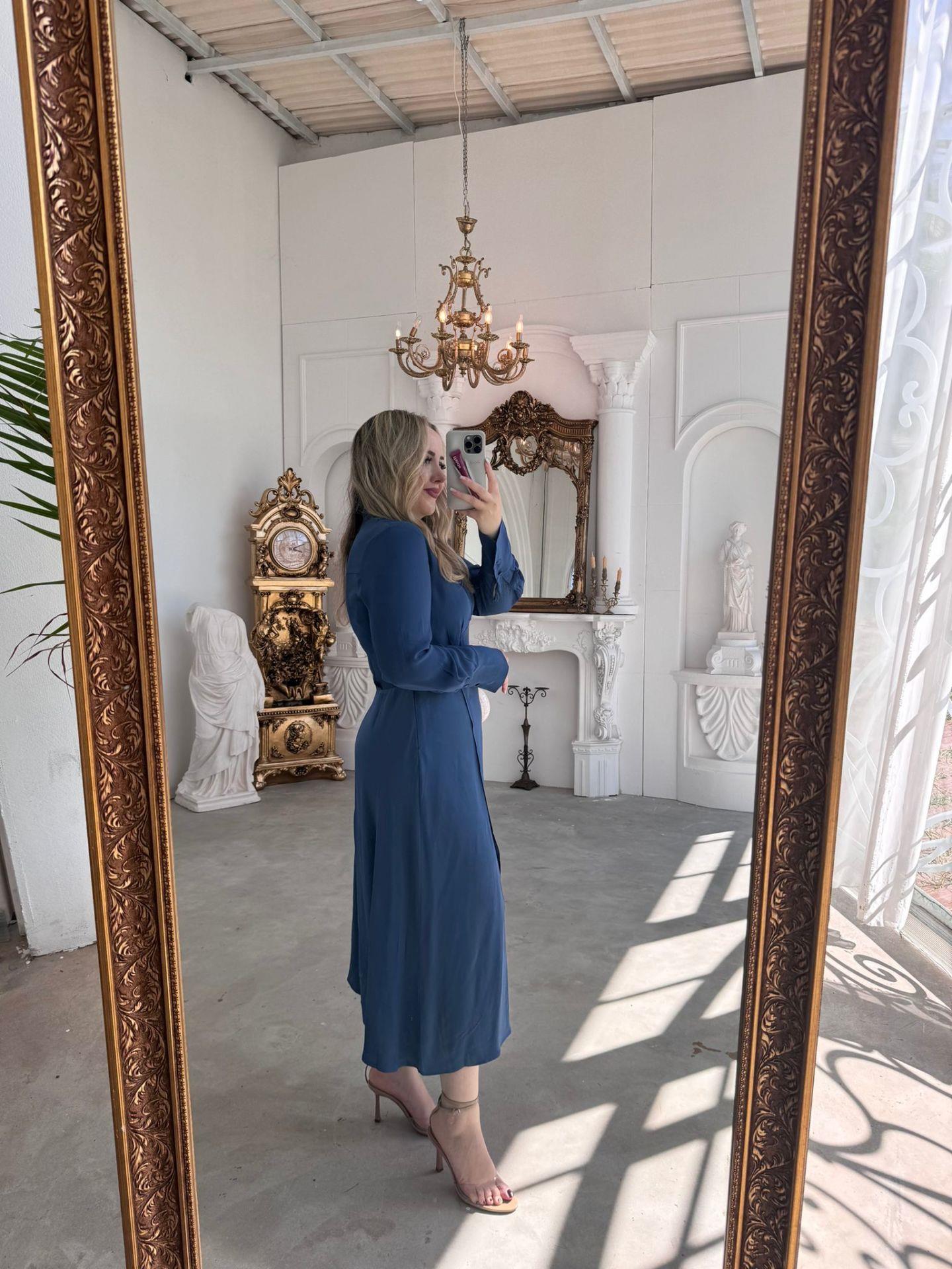 ORJ MARKA MODEL SATEN DETAYLI MAVİ ELBİSE